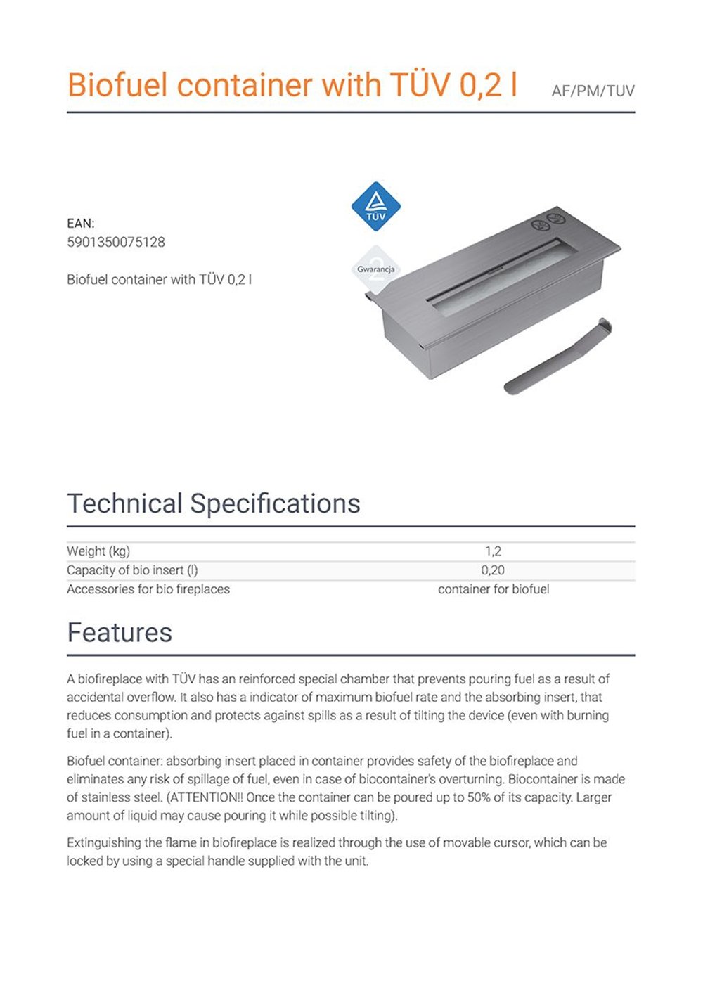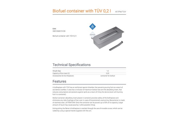 - Καυστήρας Βιοαιθανόλης που παρέχει ασφάλεια και εξαλείφει κάθε κίνδυνο διαρροής καυσίμου, ακόμη και σε περίπτωση ανατροπής
