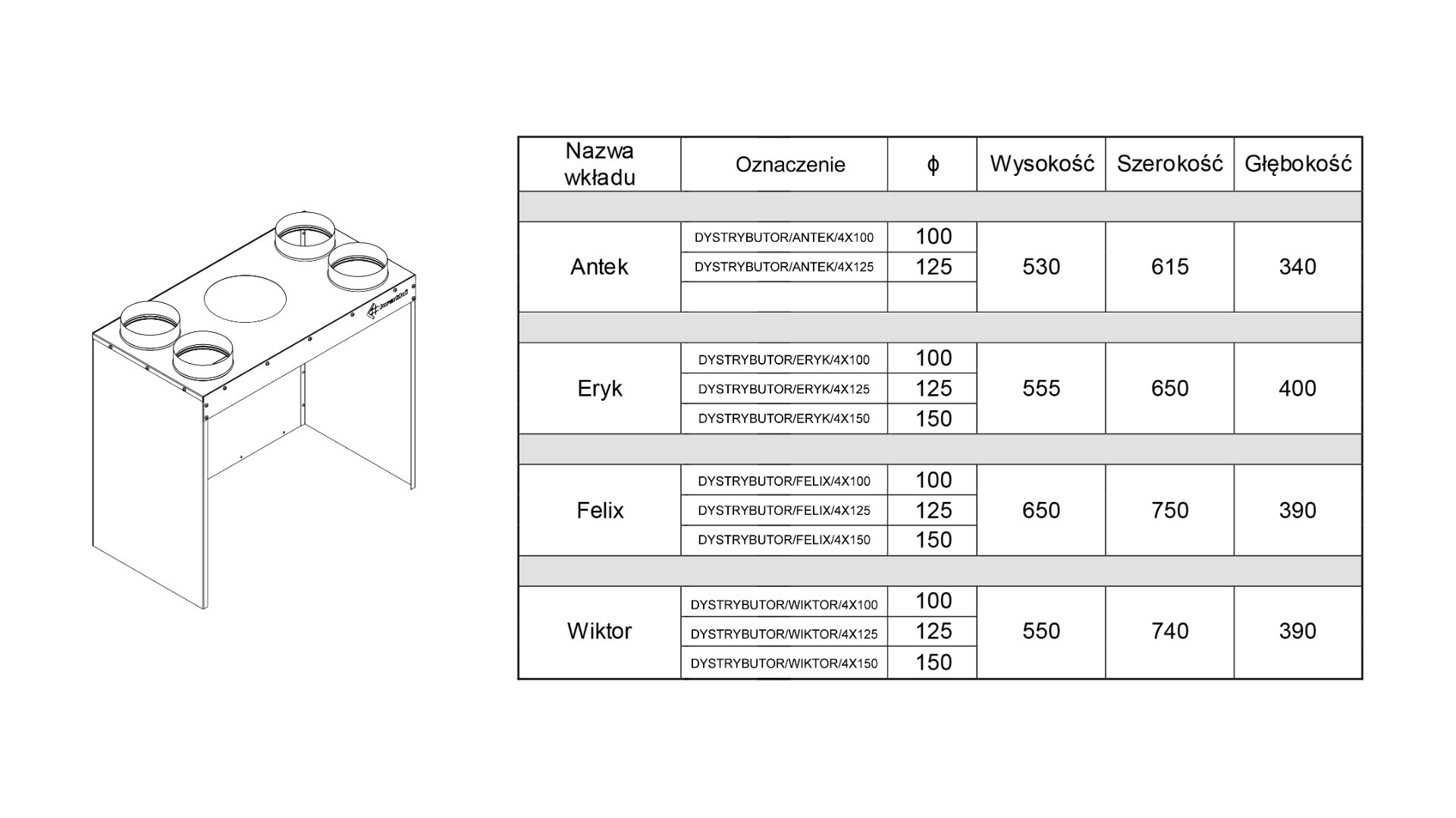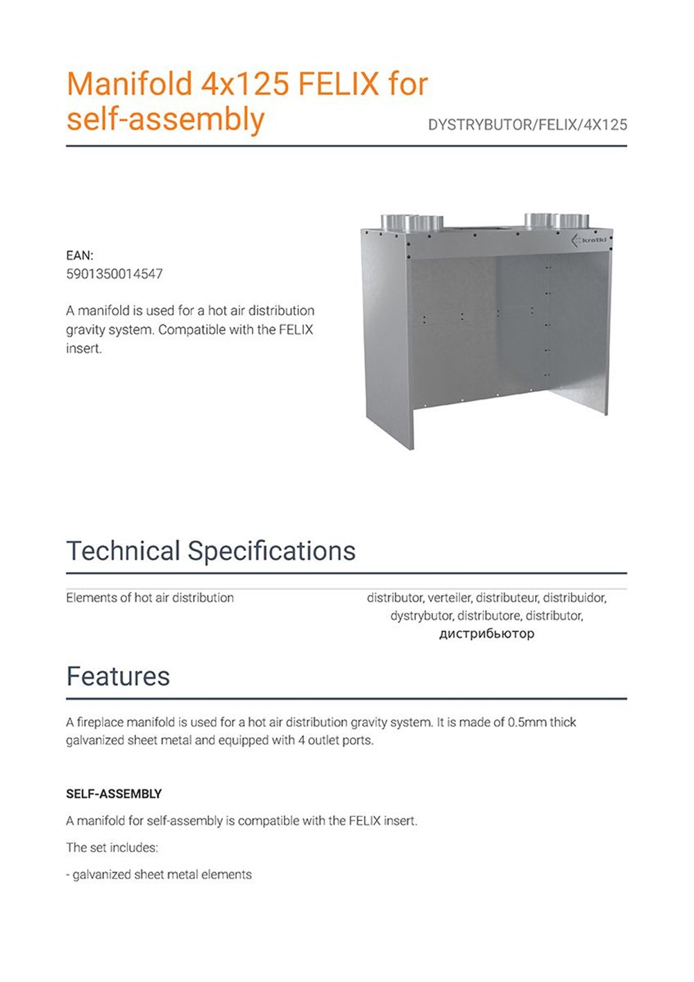 Kratki DYSTRYBUTOR/FELIX/4X125 Αεροθάλαμος για Ενεργειακό Τζάκι