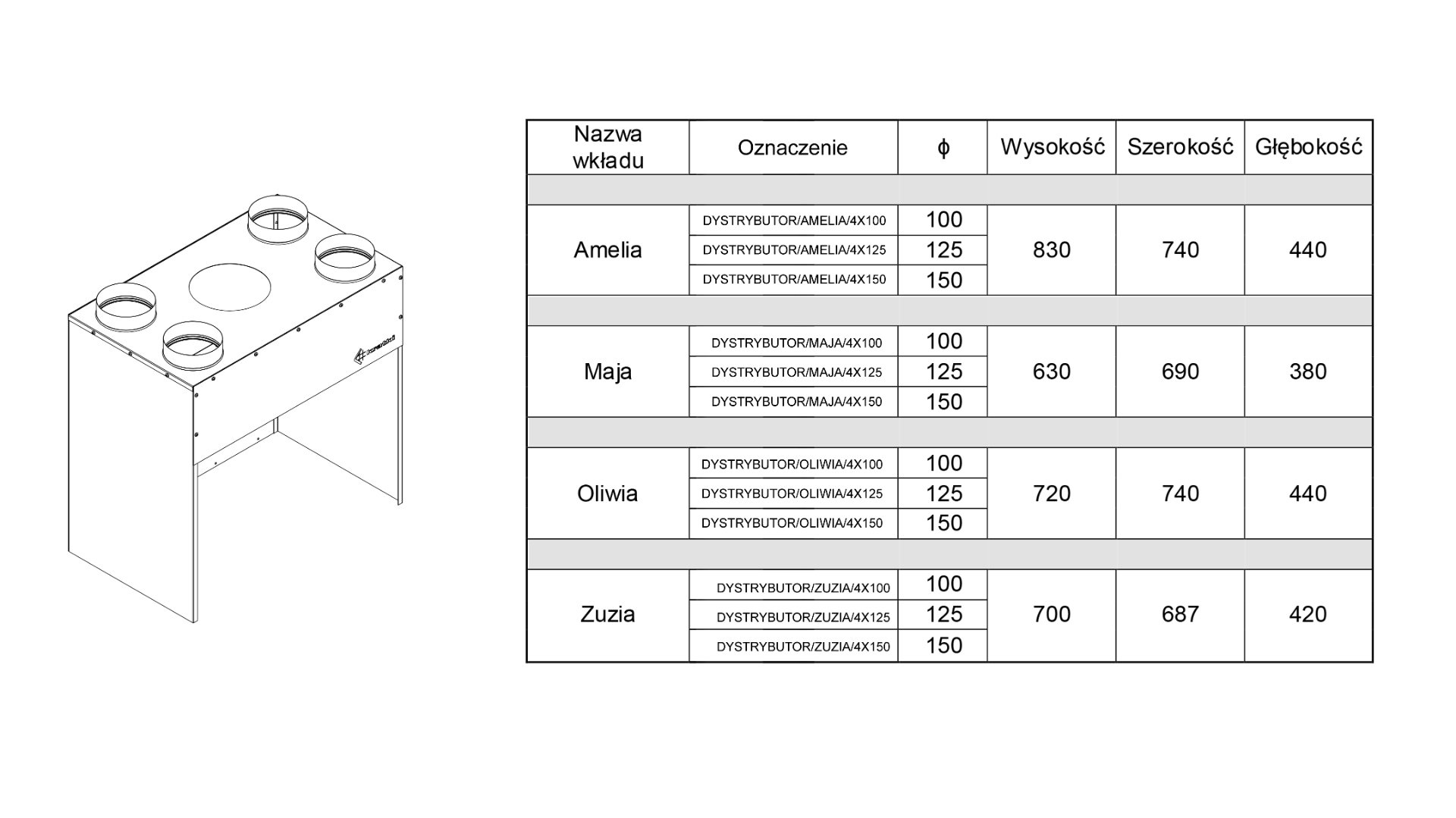 Kratki DYSTRYBUTOR/ZUZIA/4X125 Αεροθάλαμος για Ενεργειακό Τζάκι