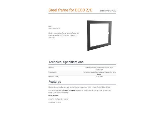 Kratki BLENDA/Z/E/DECO Χαλύβδινη Πρόσοψη Τζακιού 79.1x63.5cm