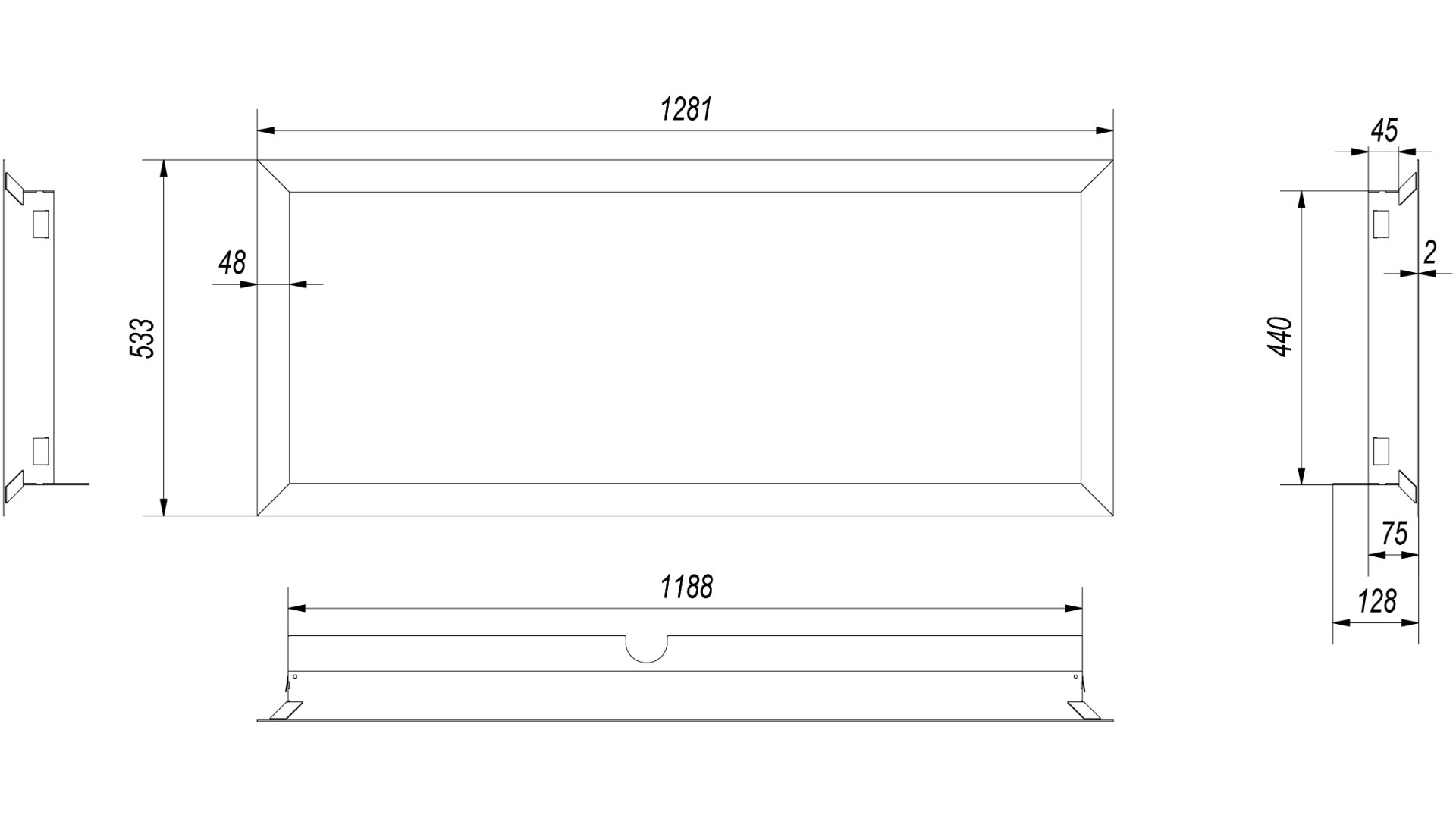 Kratki BLENDA/MB/120/G Χαλύβδινη Πρόσοψη Τζακιού 128.1x53.3cm