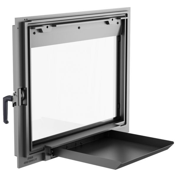 - Πρόσοψη τζακιού, από την εταιρεία Kratki, κατασκευασμένη από χυτοσίδηρο με λιτό σχεδιασμό και εξοπλισμένη με πυρίμαχη πόρτα με κεραμικά, ανθεκτικά στη θερμότητα