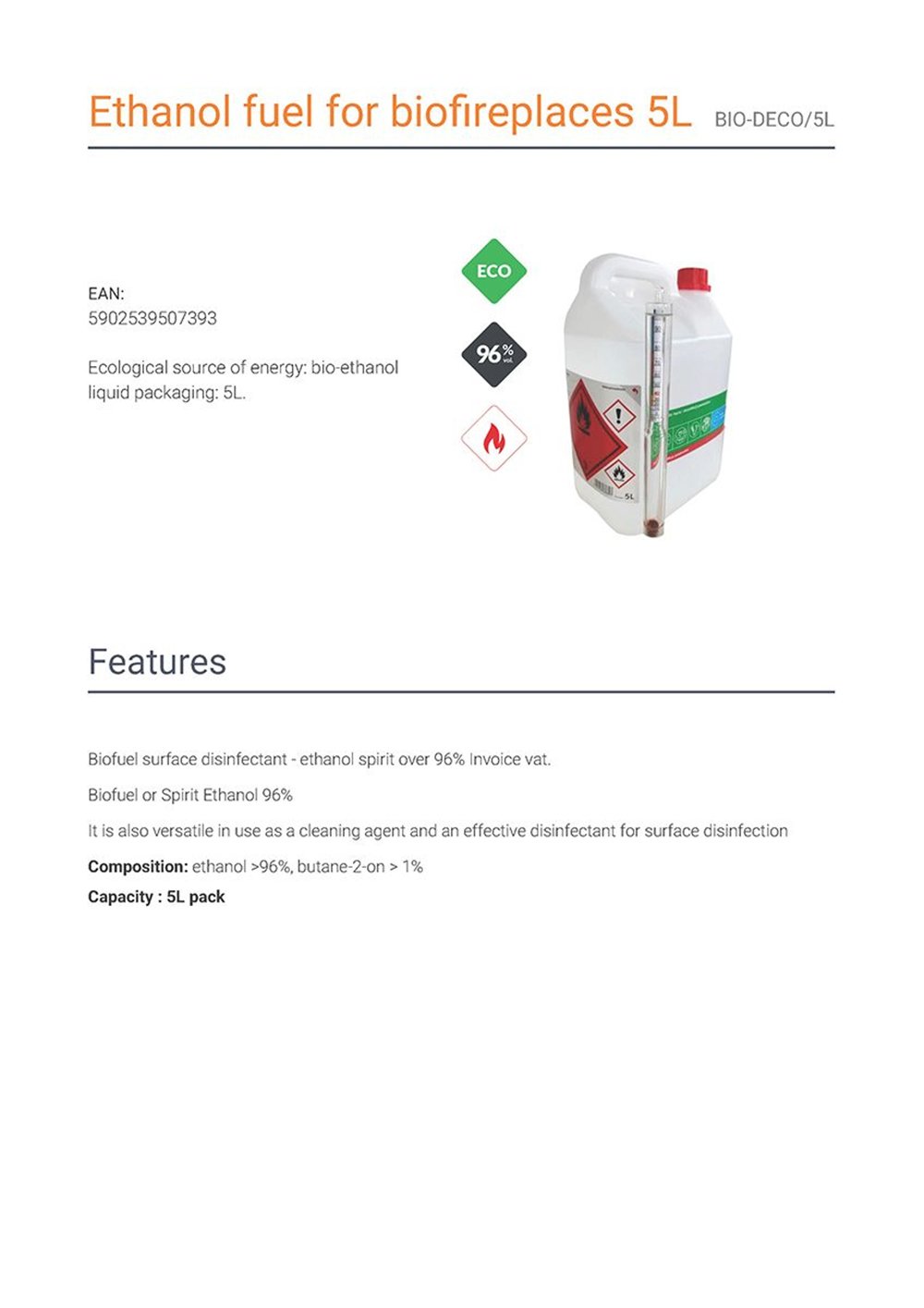 Kratki Bio-deco/5l Υγρο Βιοαιθανολης (96%) 5 Λιτρα 100% Οικολογικο