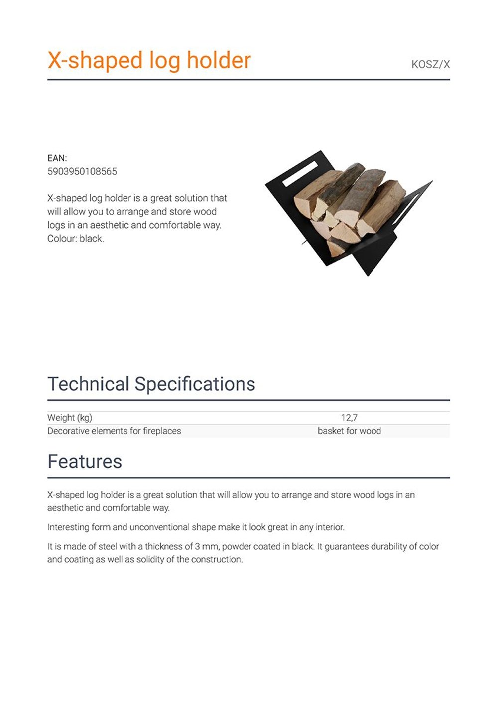 Kratki KOSZ/X Μεταλλικό Καλάθι Αποθήκευσης Ξύλων 60.9x40x35.4cm Μαύρο