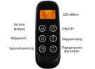 - Περιλαμβάνεται ψηφιακό τηλεχειριστήριο με οθόνη LCD και ενδείξεις θερμοκρασίας, θερμοστάτη, χρονοδιακόπτη (timer) έως 9 ώρες, ρυθμίσεις χρώματος εφέ φλογας, επιλογών χρωμάτων εστίας.