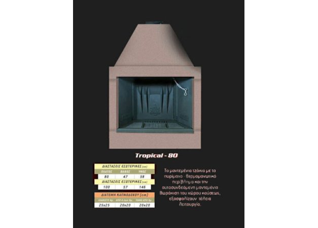 Superkamin Tropical 80 Τζάκι Εσωτερικού Χώρου Μαντεμένιο Γκρι 100x57x146cm
