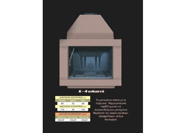 Superkamin K-4 Κλειστό Τζάκι Εσωτερικού Χώρου Μαντεμένιο Γκρι 110x65x142cm