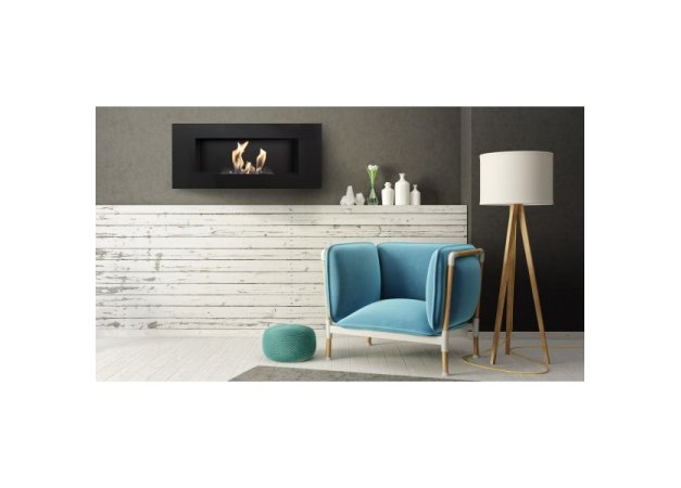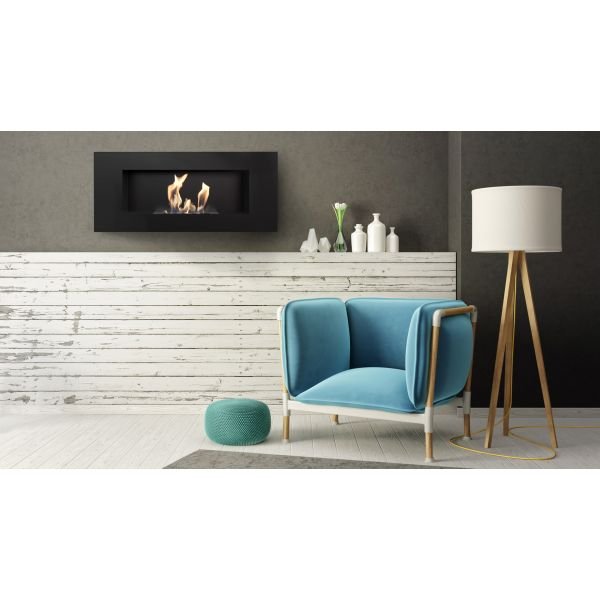 Kratki Delta 2 Tuv Επιτοίχιο Τζάκι Βιοαιθανόλης Εσωτερικού Χώρου Μαύρο 90x14.2x40cm