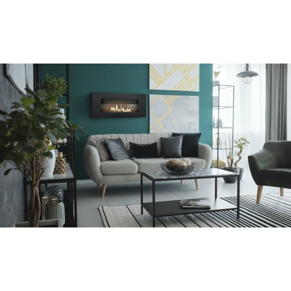 Kratki Delta Flat Tuv Επιτοίχιο Τζάκι Βιοαιθανόλης Εσωτερικού Χώρου Μαύρο 90x12x40cm