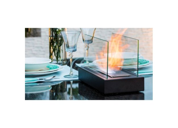 - Τζάκι βιοαιθανόλης, από την εταιρεία Kratki, με χαλύβδινο σώμα, ανοξείδωτη εστία και γυάλινα πλαϊνά για επιτραπέζια τοποθέτηση