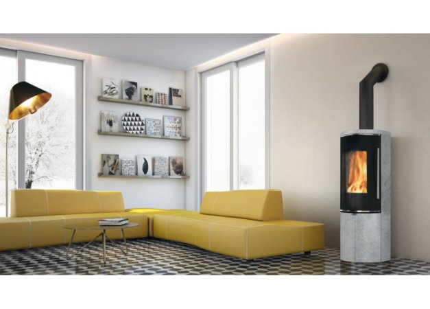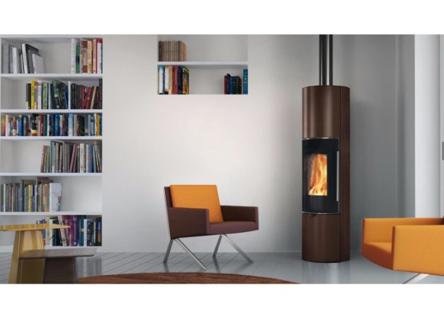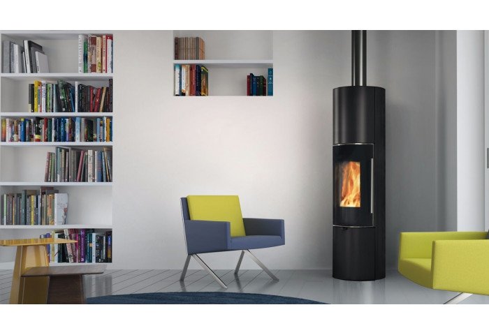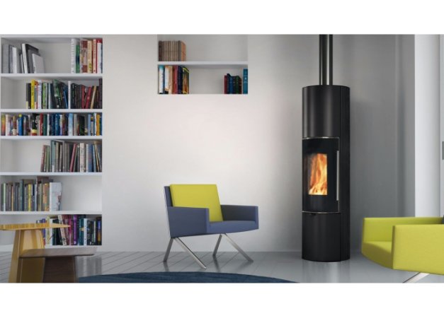 - Σόμπα ξύλου. Άπλετο κάθετο τζάμι που εκθειάζει τη φυσική πορεία της φλόγας.