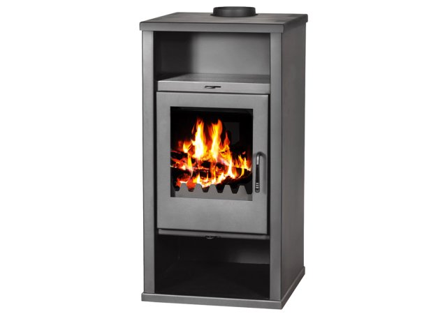 Ntontos Ν.16 Χαλύβδινη Ξυλόσομπα 9kW Γκρι Με Αποθηκευτικό Χώρο για Ξύλα