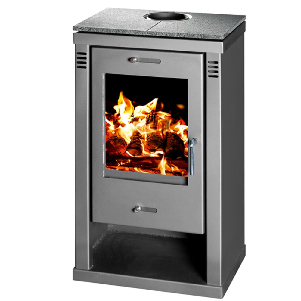 Ntontos Ν.39 Χαλύβδινη Ξυλόσομπα 7kW Γκρι Με Αποθηκευτικό Χώρο για Ξύλα