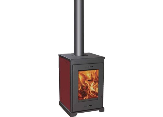 Syrios Pelagos Χαλύβδινη Ξυλόσομπα Καλοριφέρ με Φούρνο 15.2kW Κόκκινη