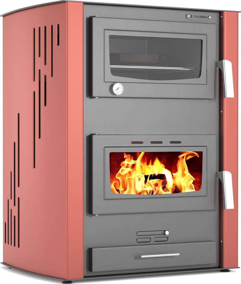 Thermiki ATS Hydro Masina 90-30 Χαλύβδινη Ξυλόσομπα Καλοριφέρ με Φούρνο 35kW Μπορντό