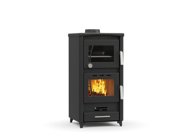 Φούρνος εμαγιέ, με ταψί, σχάρα και θερμόμετρο 0-300°C. Πυρίμαχο κεραμικό κρύσταλλο 4mm αντοχής έως 750°C. Σκελετός από χάλυβα 2,5mm και στο χώρο καύσης βερμικουλίτης SF750 25mm. Δοχείο(συρτάρι) συλλογής στάχτης στο κάτω μέρος της.